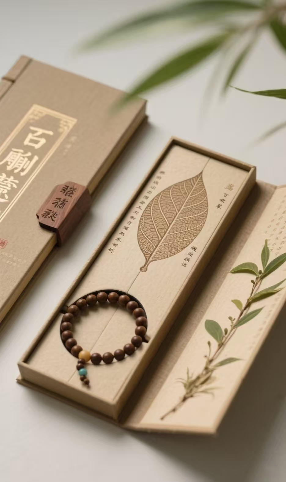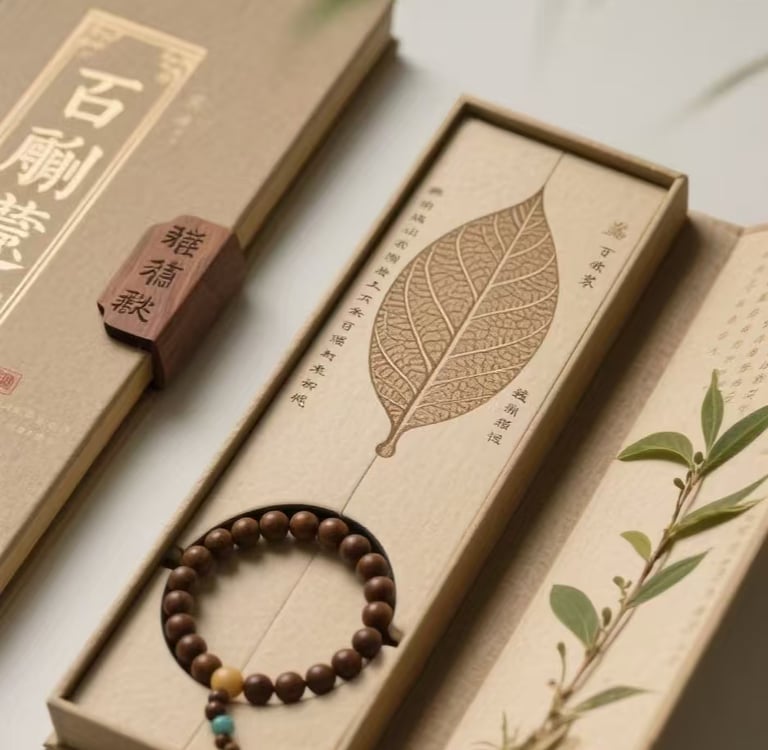 包装设计简洁大方,突出手串的五行元素,方便携带且保护产品安全。